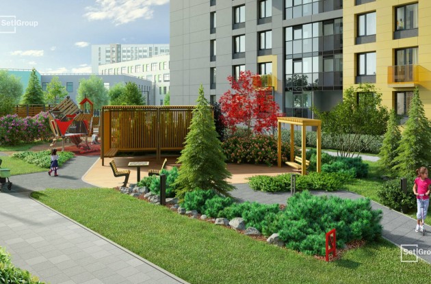 В корпусе 1 девелопер анонсировал входную центральную группу с зоной ресепшн и дизайнерской отделкой. Особенностью комплекса станет лаундж-зона на крыше. Там для жильцов установят мебель и перголу с качелями. Кроме этого в составе ЖК появится детский сад на 240 мест, школа с двумя бассейнами и стадионом на 550 учеников, детский клуб, ТЦ. Для автомобилистов под каждый корпусом предусмотрена подземная стоянка — всего будет оборудовано более 700 машино-мест, кроме этого появится многоуровневый наземный паркинг. В закрытых от машин дворах построят детские площадки, сделают зоны для отдыха. В центре жилого комплекса будет создано креативное пространство с видовой площадкой в виде моста и липовой аллеей. Также там оборудуют игровой парк SetlKids и спортивную зону SetlSport с тренажерами и площадками для баскетбола и волейбола.
