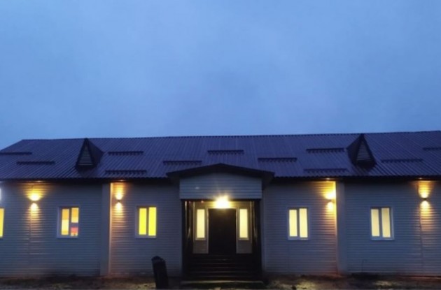 Наружные стены обшиты металлосайдингом, обустроена наружная подсветка здания.