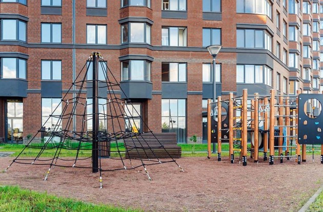 На придомовой территории ЖК «Новое Купчино» выполнено благоустройство: оборудованы современные детские и спортивные площадки, зоны отдыха, выполнено качественное озеленение с элементами ландшафтного дизайна, а именно — геопластики. На территории высажены деревья, кустарники и травяные газоны.