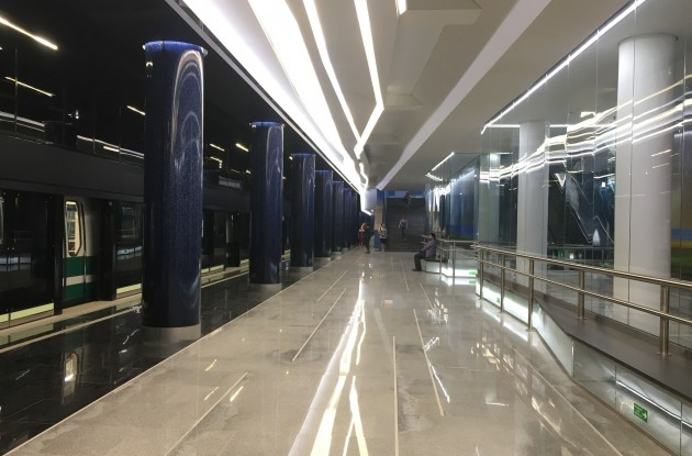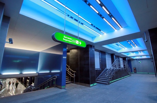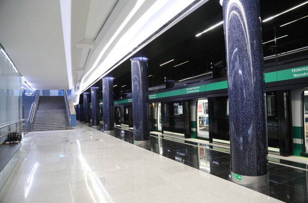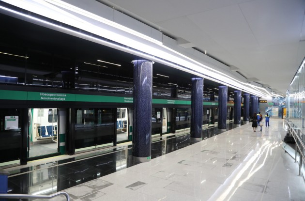 «Новокрестовская» — станция Петербургского метрополитена Невско-Василеостровской линии. Расположена на западном берегу Крестовского острова, рядом с футбольным стадионом. Подземный станционный комплекс: общая площадь — 22 409 м 2 , строительный объем — 127 152,7 м 3 . Наземные павильоны выходов: площадь застройки — 1505,4 м 2 , общая площадь — 966,8 м 2 , строительный объем — 9648 м 3. «Новокрестовская» — первая станция метро в Петербурге, которая располагается непосредственно на берегу Невской губы, и единственная — с боковыми платформами, не являющаяся конечной. Станционный комплекс мелкого заложения с одним подземным вестибюлем, расположенным на намывной территории Крестовского острова. Комплекс представляет собой 3-этажное подземное сооружение. На верхнем этаже расположен вестибюль, на нижнем — станция с боковыми посадочными платформами. Станция спроектирована с учетом максимальных пассажиропотоков — 30 тыс. пассажиров/час на вход или выход с учетом работы стадиона «Санкт-Петербург».