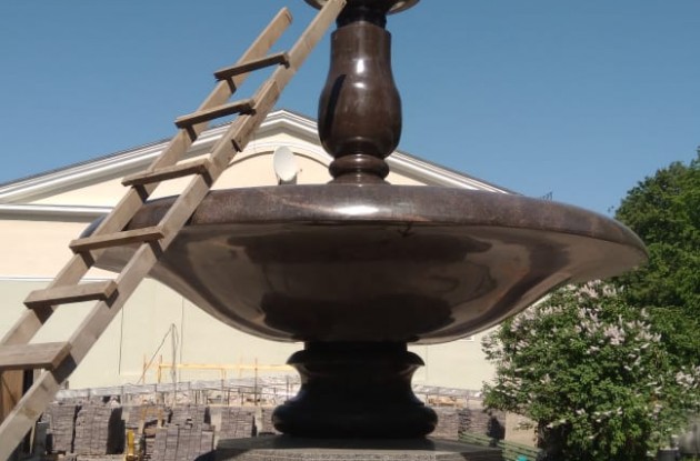 В задачи подрядчика входил демонтаж существующих и возведение новых подземных и наземных конструкций фонтана, устройство подземной камеры с водомерным узлом, отмостки из каменногорского гранита, обработка железобетонной конструкции чаши гидроизоляцией проникающего действия, облицовка стен природным камнем, монтаж инженерных сетей и многое другое. Фонтаны и дорожки снабжены современной вечерней подсветкой.