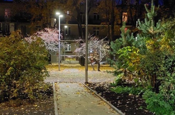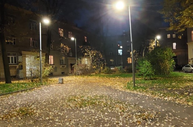 Фонари хорошо вписались в существующую застройку благодаря лаконичному дизайну. Светильники просты и удобны в обслуживании. Они подключены к автоматизированной системе управления наружным освещением города.