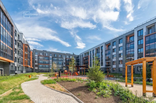 Дворы закрыты от машин и благоустроены зонами отдыха с подвесными качелями, скамейками и деревянными круглыми беседками. Для детей организованы игровые площадки SetlKids с оригинальными горками, песочницами, бизибордами и качелями-гнездами. Для занятий спортом застройщик обустроил площадки по стандарту SetlSport: фитнес-капсулы, тренажёры, различные турники, теннисные столы и площадку для игр в мини-футбол или баскетбол.