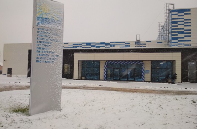 Новое современное здание с крытым катком и бассейнами построено по программе «Газпром — детям». В «Айсберге» расположены два бассейна: ученический, размером 10х6 м и оздоровительный — 25х13,5 м. В мелкой части оздоровительного бассейна, на которую приходится большая часть бассейновой чаши, глубина составляет 1,2 м. В прыжковой части — на 60 сантиметров глубже. Бассейном, разделенным на пять дорожек, могут пользоваться маломобильные группы населения благодаря специальному подъемнику. Главной достопримечательностью комплекса является просторная ледовая арена площадью 30х60 м, где организовано массовое катание. Вода, используемая для заливки льда, проходит четыре стадии очистки: две химические и две технические. А для экономии электроэнергии используются большие потолочные окна.Также «Айсберг» включает в себя два тренажерных зала: кардио и силовой. Новое современное здание получило облицовку из глазурованных терракотовых плит. Плиты смонтированы на сертифицированные подвесные системы, выдерживают большие ветровые нагрузки. Инновационные материалы отличаются самоочищаемостью — пыль не остается на поверхности панели и легко смывается дождем, так как панель не производит статического электричества. Цветостойкость панелей достигается методом окрашивания в массе. При сколах или царапинах плита сохраняет первоначальный цвет и при небольших изъянах не требует замены отдельных элементов.