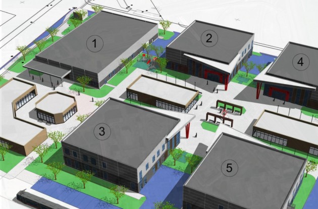 Застройщик ООО «Акр» задумал городок из пяти зданий. Проект разработало ООО «Аркон». Позднее застройщик сменился на ООО «Технопаркспорт».