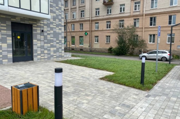 Двор жилого комплекса застройщик благоустроил и озеленил, а также установил в нём детскую площадку.