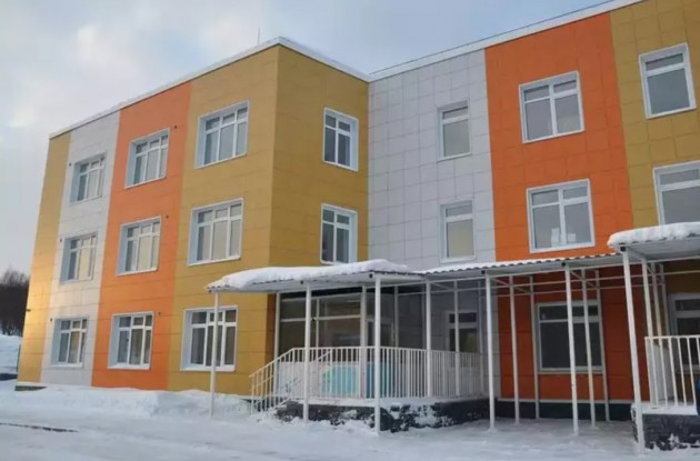 Возведение детского сада на 220 мест в Североморске началось в мае 2020 года. Подрядчик построил трехэтажное здание площадью 4965,92 кв. м, выполнил работы по облицовке фасада, устройству кровли и внутренней отделке.