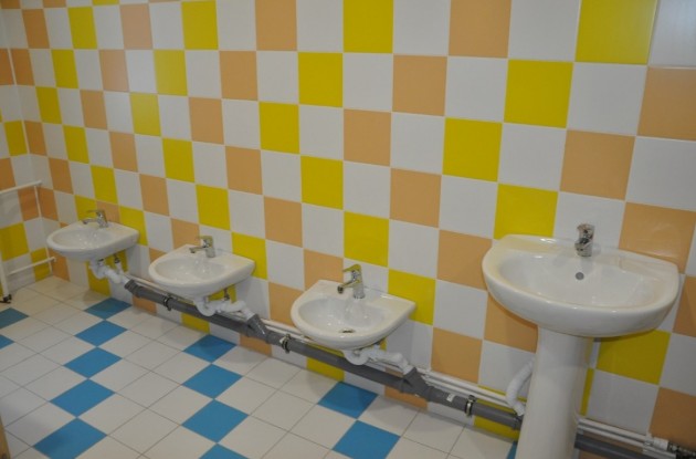В трехэтажном здании предусмотрен лифт, подъемник для маломобильных граждан, а групповые первого этажа оборудованы полами с подогревом. Чтобы исключить сквозняки при проветривании помещений, установлены специальные диффузоры.