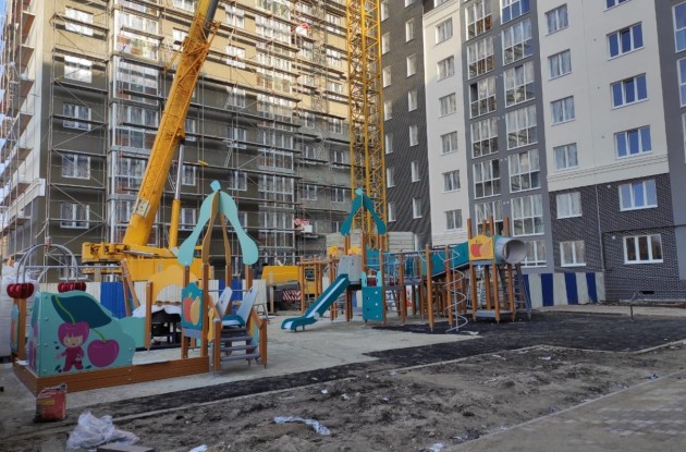 На территории комплекса выполняется устройство детских и спортивных площадок, озеленение. Предусмотрены гостевые автостоянки.