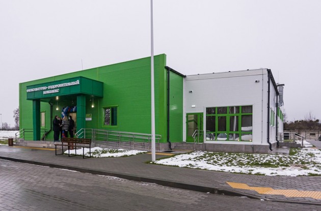 Помимо здания, здесь обустроен мини-стадион с беговыми дорожками, освещением, детской площадкой, натуральным игровым полем и зоной для уличной гимнастики.