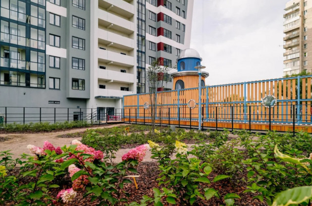 В двухсекционном доме переменной этажности (от 12 до 17 этажей) расположена 271 квартира общей площадью 12,3 тысяч кв. м, а также отапливаемый подземный паркинг, в который можно спуститься на лифте. На закрытой дворовой территории обустроена детская площадка с горкой в виде маяка, места для отдыха и занятий спортом. На первом этаже предусмотрены коммерческие помещения для торгово-бытовой инфраструктуры.