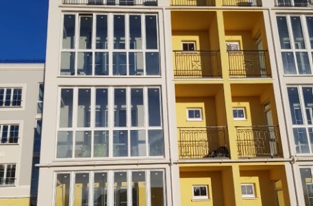В квартирах имеются просторные балконы с панорамным остеклением и небольшие открытые балконы. Окна в квартирах также имеют панорамное остекление (с французскими балкончиками). На верхнем этаже располагаются открытые балконы-террасы. Кровля домов – эксплуатируемая, на ней предусмотрены зоны для барбекю, сюда же выходят дымоходы для каминов.