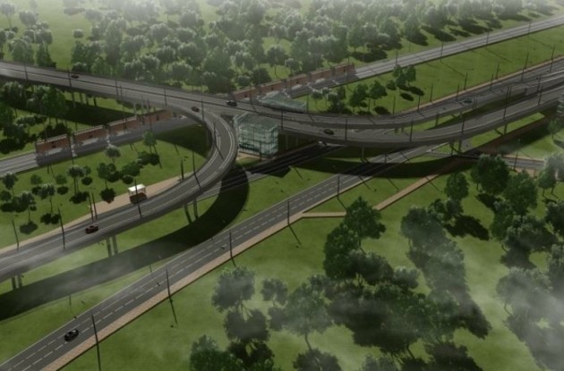Проект предусматривает строительство двухуровневой транспортной развязки на пересечении трассы с Вознесенским шоссе.