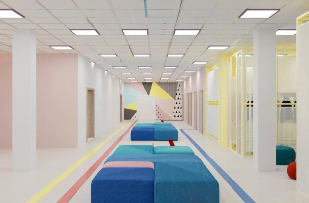 Во дворе школы предусмотрены зоны для тихого отдыха, игровые площадки, а также территория для проведения общешкольных торжеств.