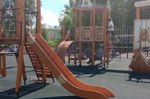 В Шенкурске, на берегу реки Ваги, открылась детская площадка, благоустроенная в рамках реализации национального проекта.