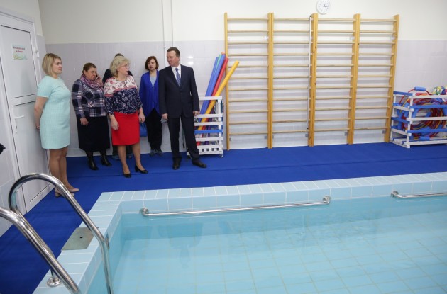 Северную часть первого этажа занимают помещения бассейна и пищеблока. На втором этаже находятся 4 групповые ячейки для детей старшего (2) и дошкольного (2) возрастов.