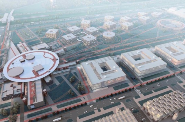 Площадь главного учебного корпуса составит 32,7 тыс. кв.м, он состоит из девяти зданий. Корпус будет объединен общей крышей в форме огромного диска с беговой дорожкой по её контуру. Вместе с аудиториями здесь также планируют разместить фабрику-лабораторию для экспресс-прототипирования научных разработок, библиотеку, фудкорт, магазины и парковки. Главной особенностью здания станет атриум-трансформер, который легко превращается в конгресс-зал на 2 тыс. человек.