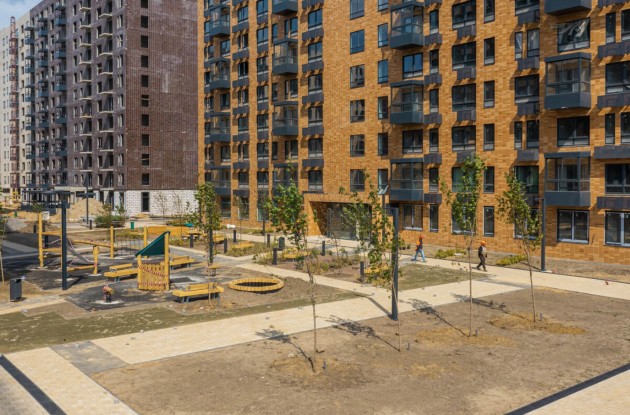Входные группы задуманы без порогов, с выходом во двор и на улицу. Во дворе устроят игровые и спортивные площадки, зоны отдыха со взрослыми деревьями и газонами.