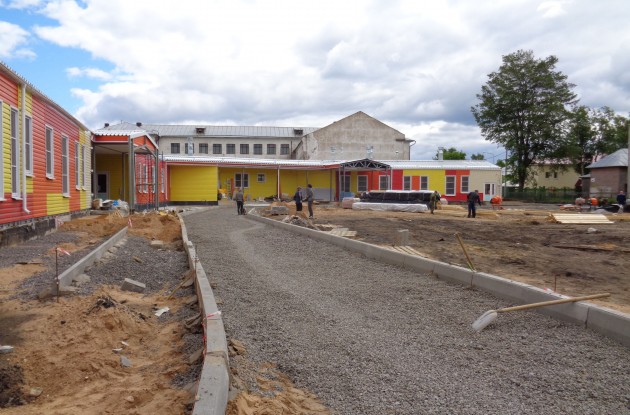 спальни, игровые комнаты, современный пищеблок. Перед входом в здание