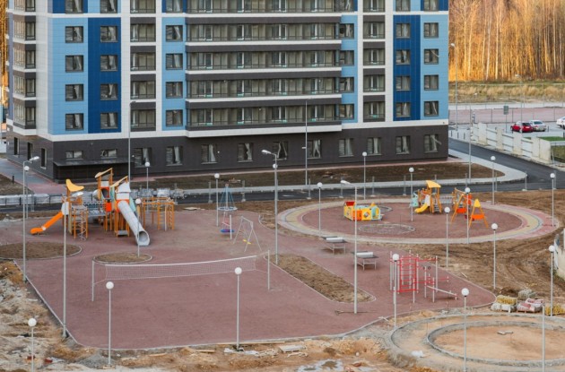 Придомовая территория благоустроена детскими развивающими площадками с антитравматическим покрытием, большой футбольно-баскетбольной площадкой, тренажерной зоной воркаут с гимнастическими снарядами и турниками, зоной отдыха с беседками.