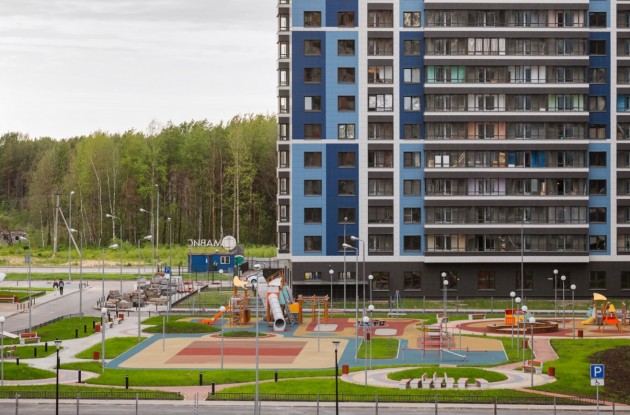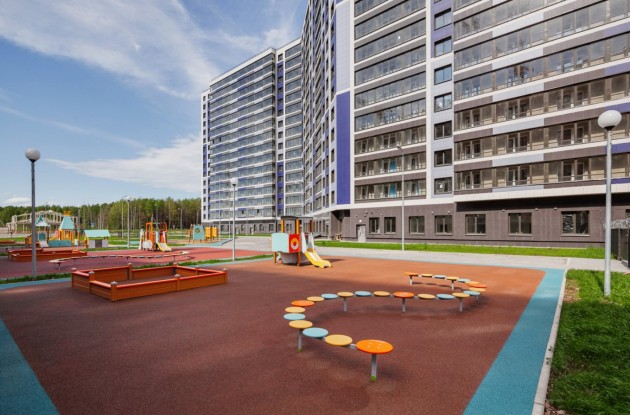 Придомовая территория благоустроена детскими развивающими площадками с антитравматическим покрытием, большой футбольно-баскетбольной площадкой, тренажерными зонами воркаут, зонами отдыха.