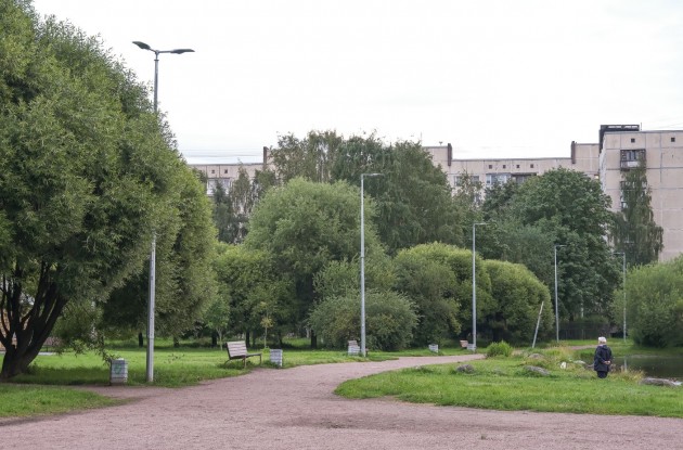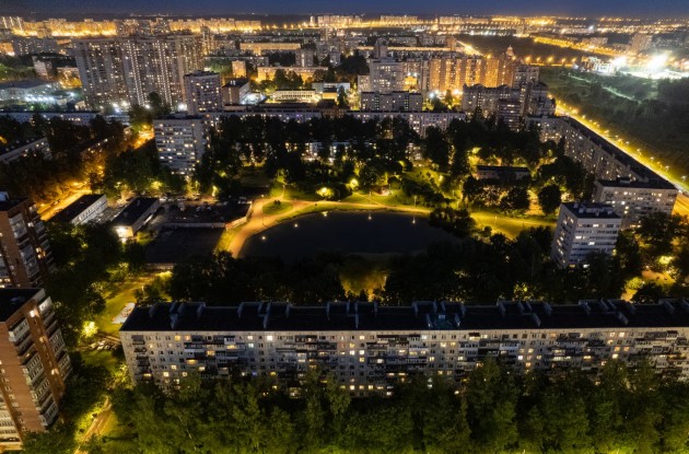 Работы на объекте выполнялись в течение года. По заказу «Ленсвета» на территории жилого массива вместо устаревшего светотехнического оборудования установлен 381 современный светодиодный светильник, размещенный на 306 современных уличных опорах.