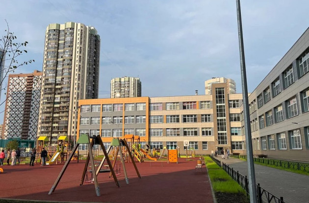 Здание школы расположилось неподалеку от двух проектов группы компаний «КВС» - ЖК «Континенты» и «Жили-Были».