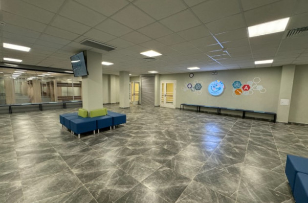 Второй блок для обучения средней и старшей школы. В блоке запроектированы учебные кабинеты основной школы, мастерские, лингафонные кабинеты иностранного языка.