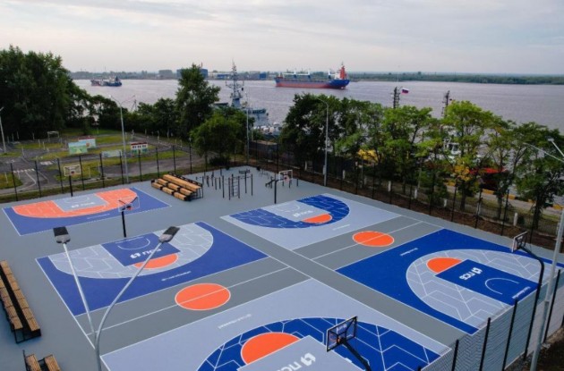 На Набережной Северной Двины расположились пять площадок с современным искусственным покрытием, зона для воркаута, трибуны и раздевалки.