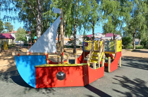 К благоустройству территории подрядчики приступили еще летом. Строители убрали ослабленные и усыхающие деревья, выкорчевали пни, спланировали территорию, обустроили дорожки из брусчатки. Игровую зону разместили на резиновом покрытии, установили детский игровой комплекс в виде парусника. На входе специалисты установили металлическую арку, которая встречает гостей яркой вывеской с названием парка.