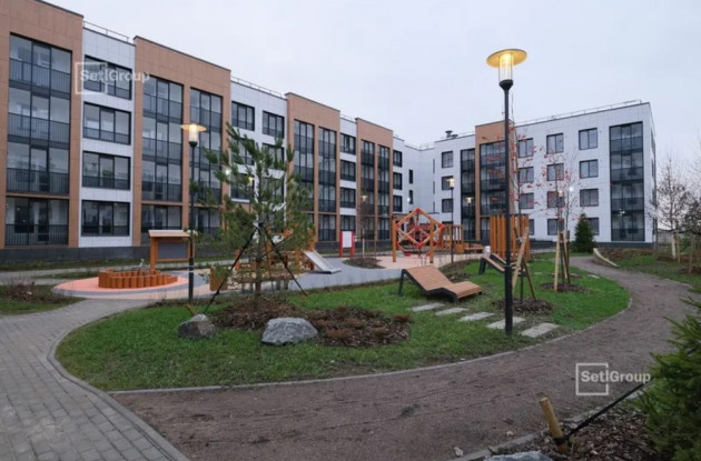 Во внутреннем дворе оборудованы: детская игровая площадка SetlKids, фитнес-станция SetlSport и уютная зона отдыха для взрослых. Вокруг высажены деревья, декоративные кустарники и обустроены извилистые пешеходные дорожки.