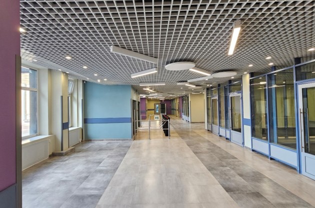 В новом корпусе для всестороннего развития школьников предусмотрены большой и малый бассейны, два спортивных зала, просторный актовый зал, специализированные учебные кабинеты, мастерские для уроков труда, библиотека, медиатека, компьютерный класс с лаборантской, а также кабинеты психолога, логопеда, врача, процедурная и прививочная.
