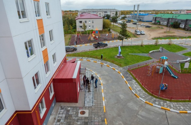 В соответствии с проектом в данном 95-квартирном доме предусмотрены 42 однокомнатные, 48 двухкомнатных и 5 трехкомнатных квартир общей площадью 4,16 тыс.кв.м. Дом построило ООО «Завод строительных конструкций «Заполярье».