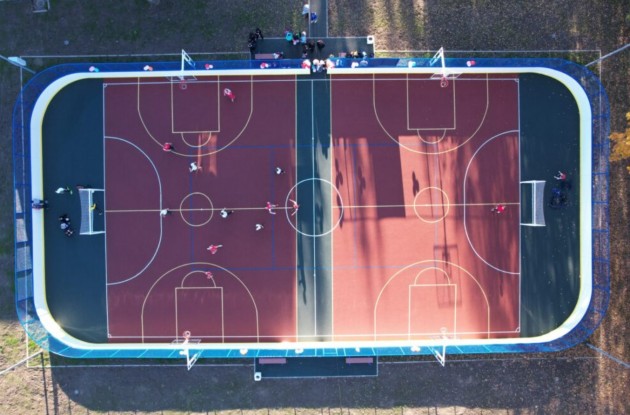 Спортивный объект построен в рамках проекта «Газпром – детям». Площадка смонтирована на основе хоккейной коробки размером 20х40 метров со специализированным спортивным покрытием. Там есть зоны для игры в футбол, баскетбол, волейбол. Зимой на площадке можно заливать лёд и играть в хоккей, кататься на коньках.