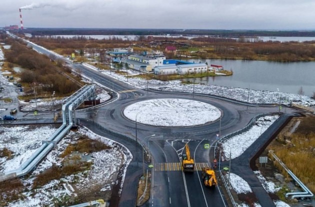 В Северодвинске открыто движение по новой круговой развязке на пересечении улиц Окружной и Коммунальной.