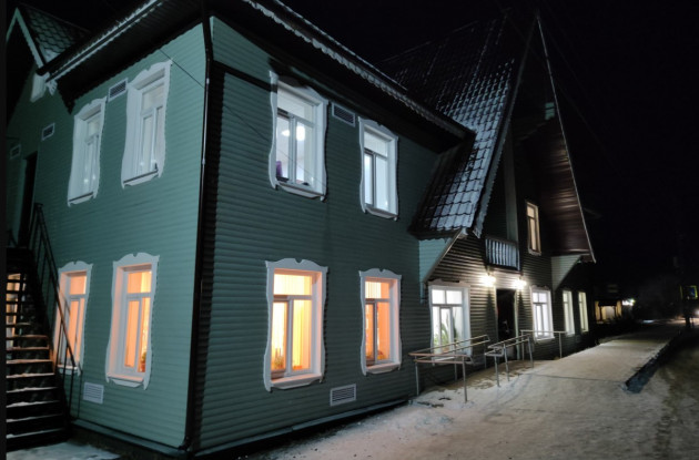 В первую очередь, в рамках государственно-частного партнерства, в порядок приведен внешний вид здания. Его фасады окрашены в светло-зеленый цвет. Уже по нацпроекту на окнах появились белые деревянные наличники, защищающие стены от негативного воздействия осадков. Также на объекте установлены вентиляционные решетки, водостоки, заменена пожарная лестница и входные группы запасных выходов.
