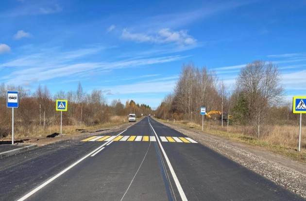 На автомобильной дороге протяженностью 8 км подрядчик обновил асфальтобетонное покрытие, укрепил обочины, нанес горизонтальную разметку и установил новые дорожные знаки.