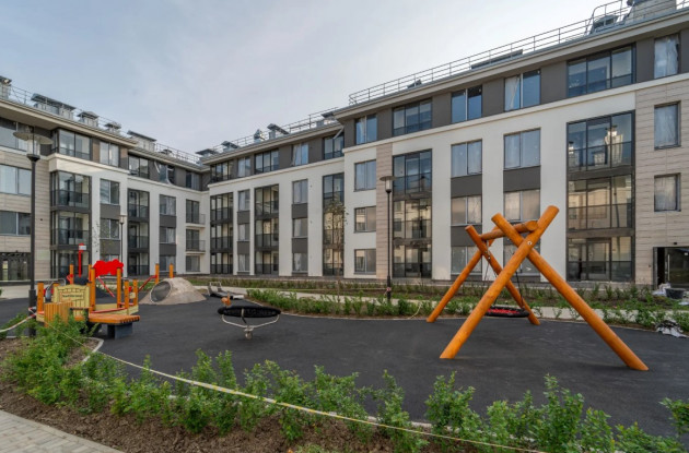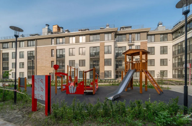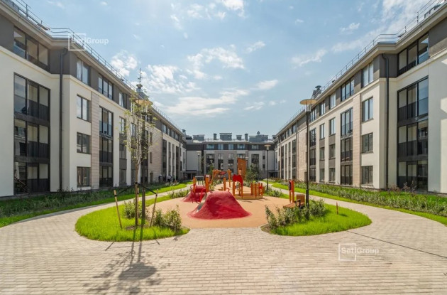 Просторные и безопасные дворы новых четырехэтажных корпусов благоустроены и озеленены: вдоль дорожек высажены различные кустарники и взрослые деревья. Для отдыха обустроены площадки с беседками и скамейками. Для детей организованы игровые площадки SetlKids с оригинальными горками, песочницами, бизибордами, качелями-гнездами и каруселями.