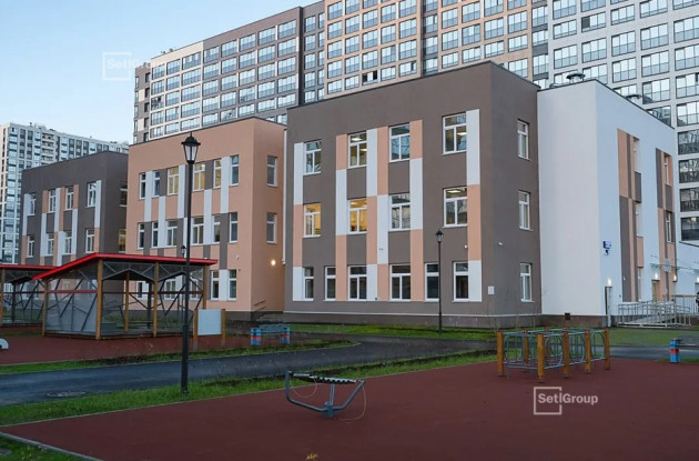 Двор детского сада застройщик озеленил и благоустроил. Игровые зоны – отдельные для каждой возрастной группы – оборудованы качелями, горками, игровыми комплексами и оснащены навесами от солнца и осадков. Для занятий физкультурой и активных игр на свежем воздухе Setl Group обустроил две большие спортивные площадки.