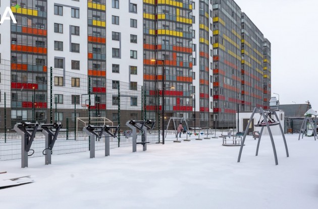 На придомовой территории выполнено комплексное благоустройство: установлены малые архитектурные формы, предусмотрено озеленение, а также детская и спортивная площадки. Территория ЖК оборудована видеонаблюдением.