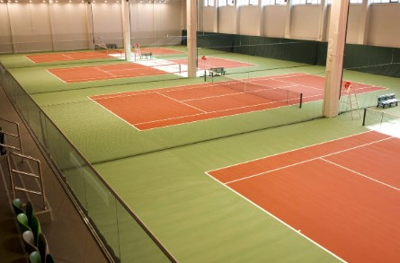 Объект в плане сложной формы, в составе которого предусмотрены: административно-бытовой блок с набором технологических помещений для спортсменов, посетителей и персонала, залы ОФП, зал на четыре теннисных корта с трибунами для зрителей, зал на три теннисных корта, универсальный спортивный зал с трибуной для зрителей.