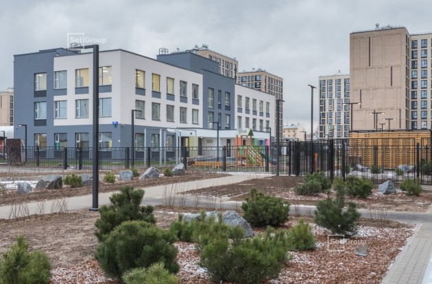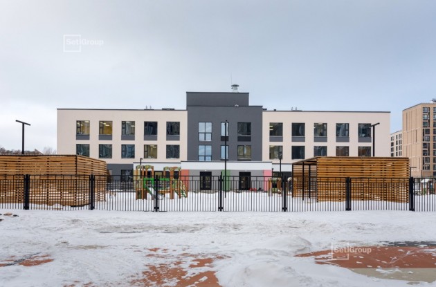 В садике есть бассейн, спальни, игровые комнаты, зал для физкультуры и музыкальных занятий, медицинский кабинет, а также комнаты для кружков и развивающих занятий. Во дворе Setl Group создал игровые площадки с песочницами, качалками, игровыми комплексами и благоустроил территорию для зарядки.
