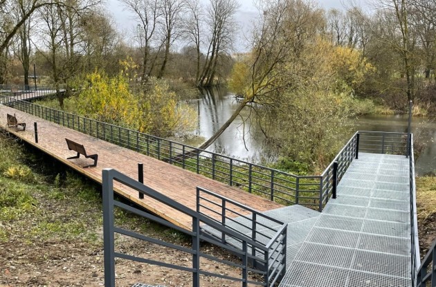 В Коммунаре, на территории у реки Ижора напротив домов 20, 26 и 28 по ул. Ижорская, закончились работы по благоустройству общественного пространства "Ижора".