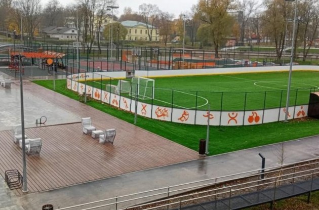 В парке у стадиона сделали баскетбольную площадку, пространства для воркаута и йоги, территории для экстрим-спорта и настольного тенниса, поле для мини-футбола и хоккея, скалодром и игровую площадку для детей.