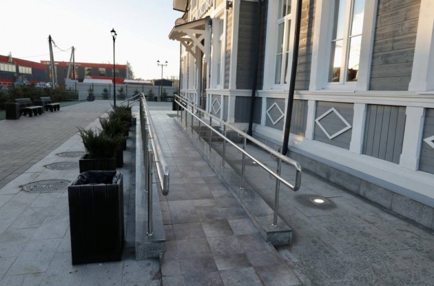 Также благоустроена прилегающая территория с использованием камбулатовского гранита. Высажено 62 ели и 20 кустов барбариса, в сквере – покрытие из брусчатки, рулонные газоны. На территории вокзального комплекса, включая сквер и пассажирскую платформу, установлены малые архитектурные формы, выполненные из переработанного пластика: 20 эколавочек, 22 экоурны и 12 экокашпо, в которых высажено 24 куста казацкого можжевельника