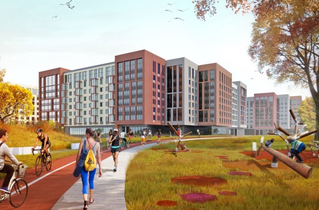 Высота потолков в квартирах – 2,7 м. 91% квартир имеет балкон или лоджию. Особенности планировок: просторные кухни-столовые в большинстве квартир, квартиры с мастер-спальнями, увеличенные санузлы, гардеробные, полное остекление лоджий и балконов. Комплекс спроектирован по концепции безопасной и дружелюбной внутренней среды, включая закрытый двор без машин, безбарьерный доступ в парадные. Предусмотрены разнообразные сценарии для отдыха – детские площадки для 3-х возрастных групп, взрослые спортивные площадки, велодорожка.