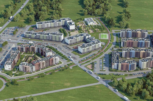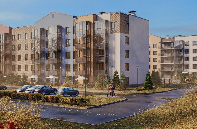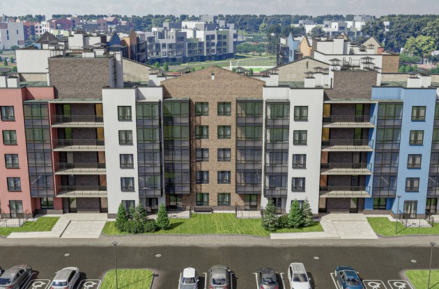 Второй корпус III этапа строительства состоит из восьми секций переменной этажности от 4 до 5 этажей. Для комфорта будущих жильцов спроектирован безбарьерный вход и лифт в каждой секции. Внутренний закрытый от машин двор будет обустроен детскими и спортивными площадками. Предусмотрена наземная парковка с внешней стороны жилого дома.