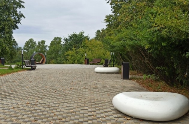 Здесь создано пять разноплановых функциональных пространств. Это центральная аллея, историко-культурное — возле памятника Николаю Толмачеву, развлекательно-видовое, фотозона и участок для тихого отдыха. Место обретает новую жизнь, здесь интересные малые архитектурные формы и декоративная подсветка.