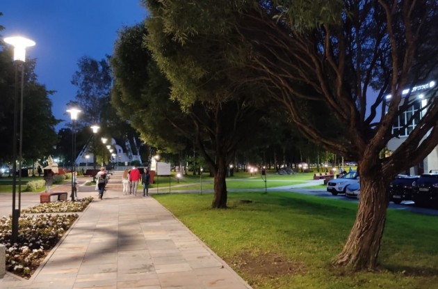 сохранены существующие насаждения: в процессе выполнения работ было пересажено 9 деревьев (из них 5 лип «долгожителей», с объемными кронами диаметром более 3м) и добавлено новое озеленение;