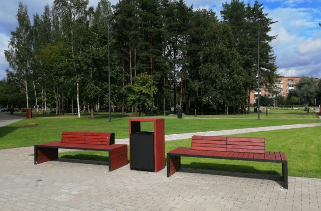 установлены скамейки для тихого отдыха, урны;